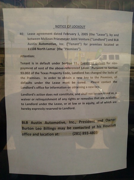 a letter of notice of lockout from the landlord