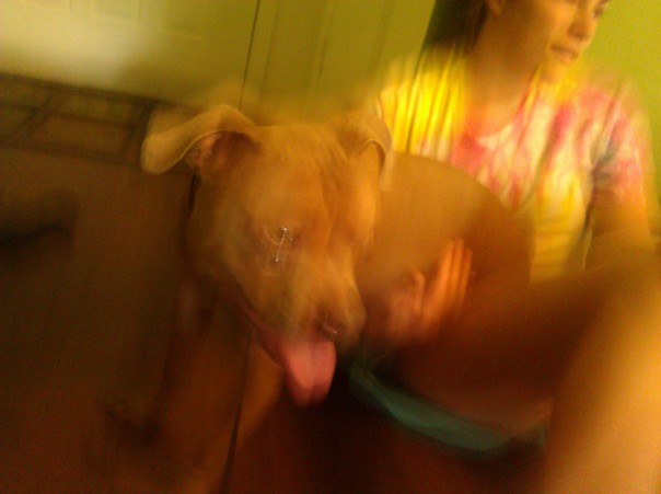 It is a shame this picture is blurry because the pit bull is actually a beautiful dog breed.
