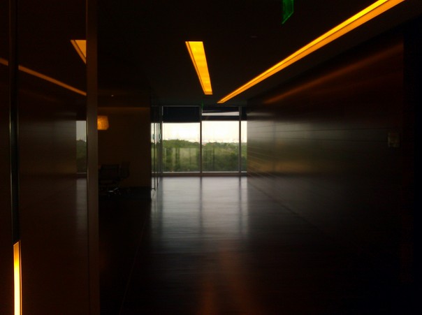The wood floors shined in the light of the glass doors to the large room.