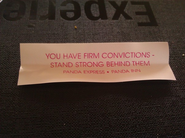 The fortune cookie from Panda Express contains a fortune on a piece of paper.