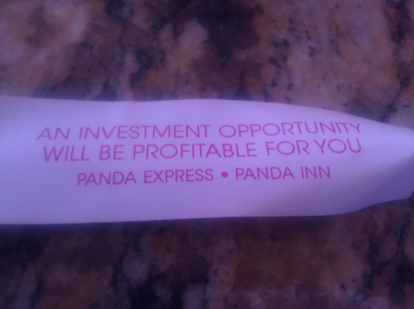 A slip of paper from a fortune cookie someone got form Panda Express.