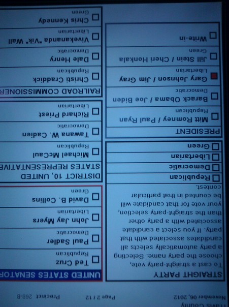 This ballot is from 2012 and contains Ted Cruz as a candidate for U.S. Senator.