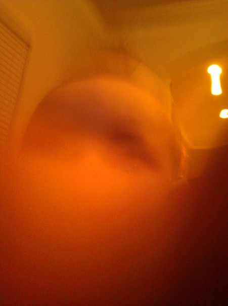 A very blurry picture of what looks like either a dolls face or a child's face.