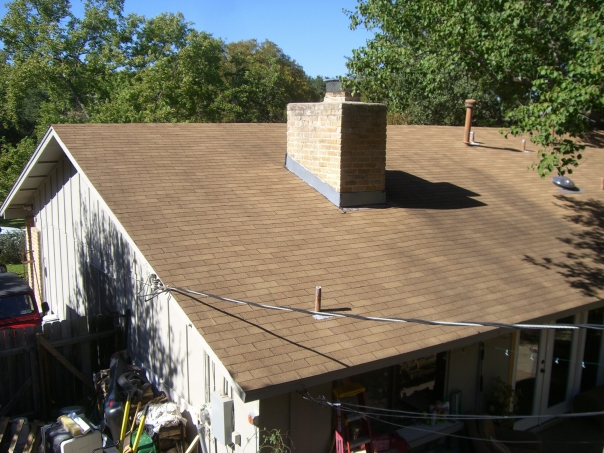 A photo of an ordinary rooftop with a large chimney on a sunny day.