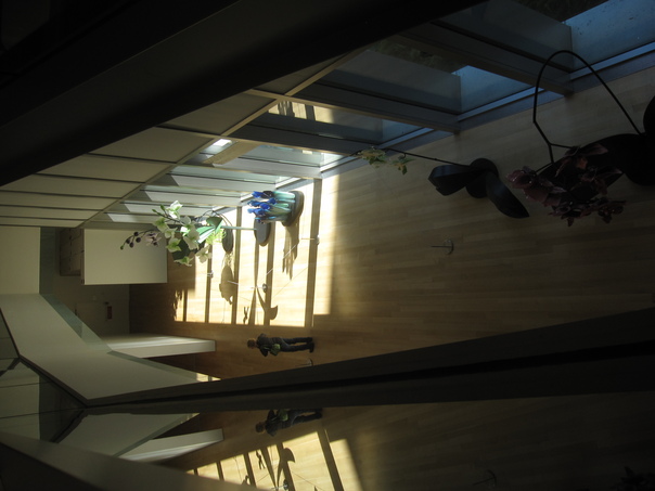 Second floor view of an open space building with contemporary decor. |