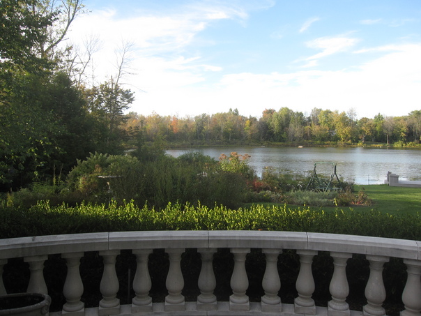 This is a picture of some one porch and grass. |