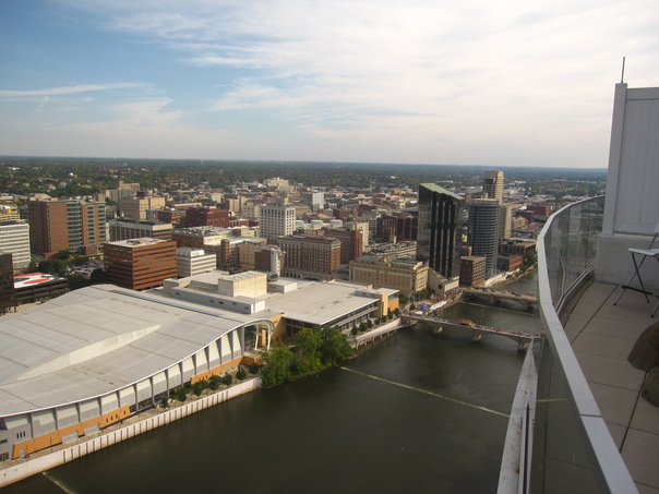 The city was beautiful and large, the buildings against the water were especially interesting. |