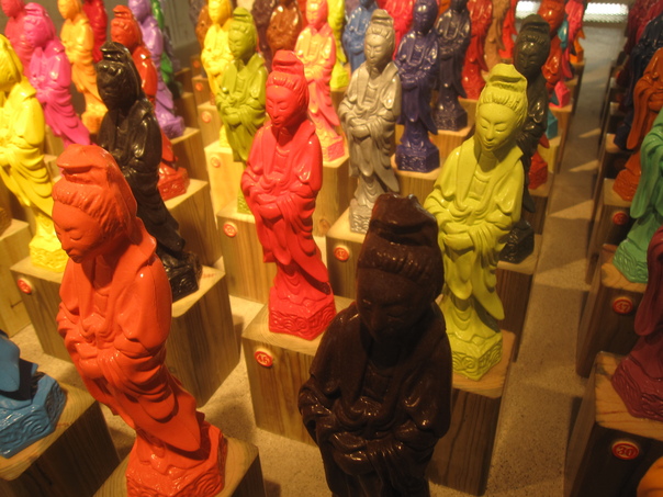 The colorful statues were crafted very cafefully so they appear almost life-like. |