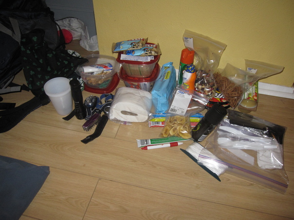 There are some food stuffs and other stationary goods in the floor.