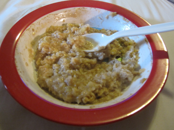 some food is there in the plate and the spoon is also there