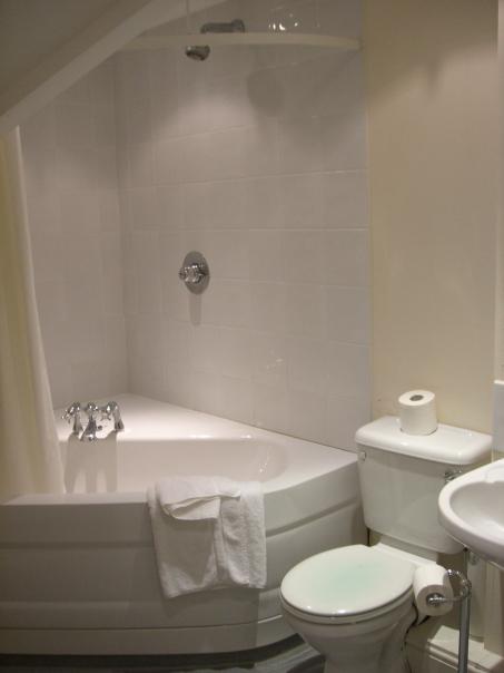 bathroom with corner tub and shower modern toilet and pedestal sink