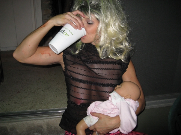 My friend Dustin was going to a Halloween party at his friend Doug's house in Rollingwood and invited Tracy and I to attend it. Tracy dressed up as Sarah Palin. Unfortunately since I hadn't really planned to do much for Halloween, I had to quickly throw something together. I wound up creating some sort of a sad-clown bee, complete with lots of yellow makeup and wings.
