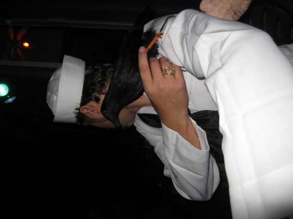 My friend Dustin was going to a Halloween party at his friend Doug's house in Rollingwood and invited Tracy and I to attend it. Tracy dressed up as Sarah Palin. Unfortunately since I hadn't really planned to do much for Halloween, I had to quickly throw something together. I wound up creating some sort of a sad-clown bee, complete with lots of yellow makeup and wings.