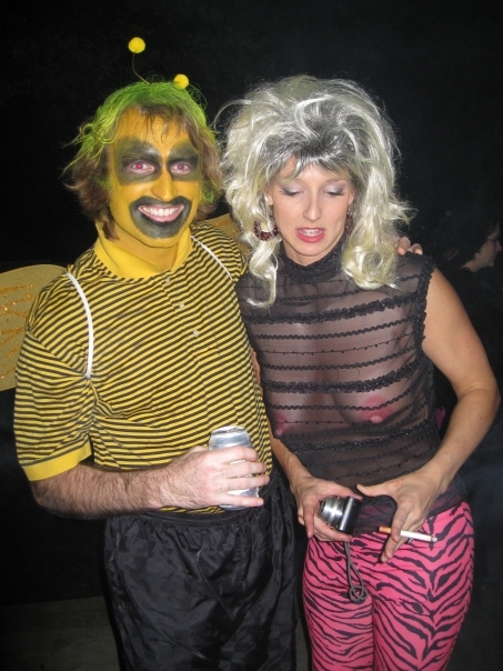My friend Dustin was going to a Halloween party at his friend Doug's house in Rollingwood and invited Tracy and I to attend it. Tracy dressed up as Sarah Palin. Unfortunately since I hadn't really planned to do much for Halloween, I had to quickly throw something together. I wound up creating some sort of a sad-clown bee, complete with lots of yellow makeup and wings.