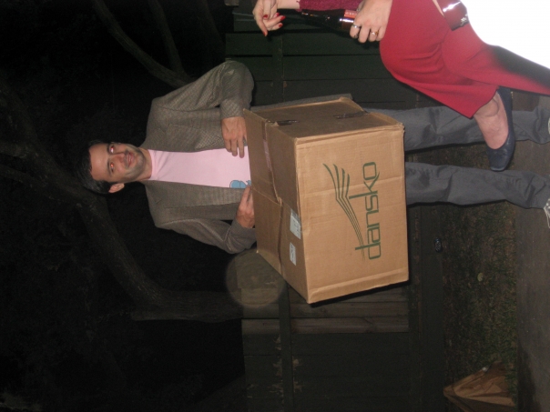 My friend Dustin was going to a Halloween party at his friend Doug's house in Rollingwood and invited Tracy and I to attend it. Tracy dressed up as Sarah Palin. Unfortunately since I hadn't really planned to do much for Halloween, I had to quickly throw something together. I wound up creating some sort of a sad-clown bee, complete with lots of yellow makeup and wings.