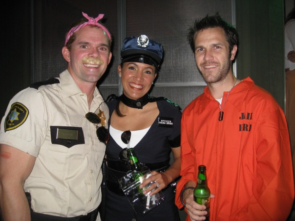 Now here is a night to remember with friends. Great night at a fun party. The real question is "What in the baggy lady cop?" Seems a little on the felony side to me.