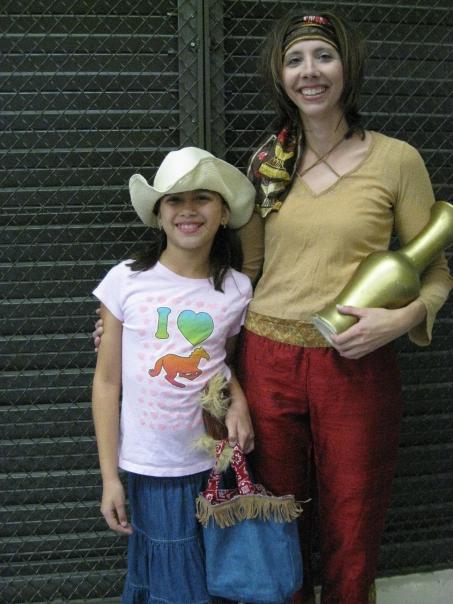 I got invited up to Tracy's school to celebrate their annual Halloween party. Tracy was an afro-hippie of some sort, her friend Megan was a train conductor, Paco was a pirate, and I showed up dressed as an airplane.