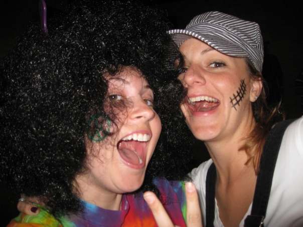I got invited up to Tracy's school to celebrate their annual Halloween party. Tracy was an afro-hippie of some sort, her friend Megan was a train conductor, Paco was a pirate, and I showed up dressed as an airplane.