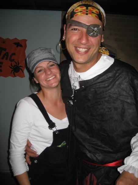 I got invited up to Tracy's school to celebrate their annual Halloween party. Tracy was an afro-hippie of some sort, her friend Megan was a train conductor, Paco was a pirate, and I showed up dressed as an airplane.