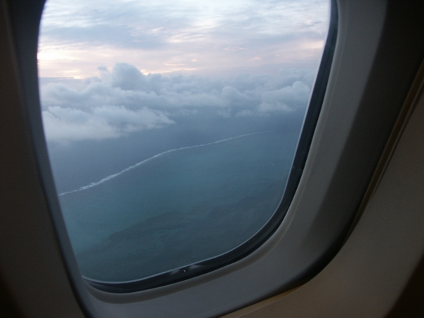 In my love of taking photographs from airplanes, this was me and Tisa's flight from Auckland, New Zealand to Nadi, Fiji. I don't even think it was a 2 hour long flight and we had the entire upper deck of the airplane almost entirely to ourselves.