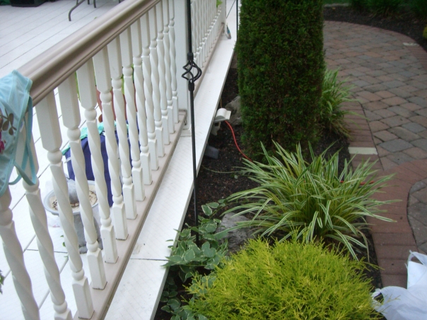I love this stone and brick walkway with it's manicured plants, bushes, and gleaming white bannister that welcome the happy visitor.