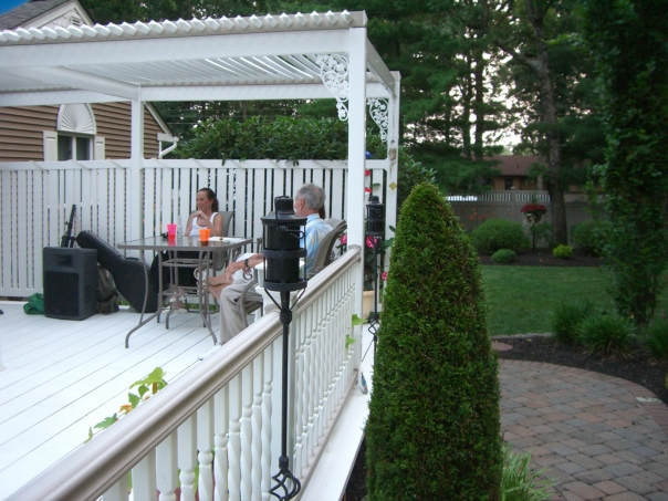 two to three people relaxing on the back porch after a jam session