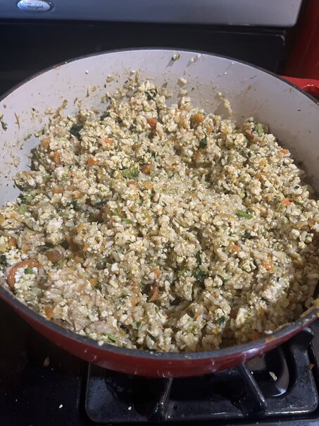 I've used a variety of meats, but the basic formula is 3 pounds of meat and then 2c of brown rice, 2c of carrots, 2c of broccoli, 2c of sweet potato, 2c fresh spinach, and usually one or two diced apples.