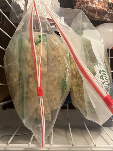 It's all cooked properly, mixed together, and then portioned out into 5-6oz bags and frozen.