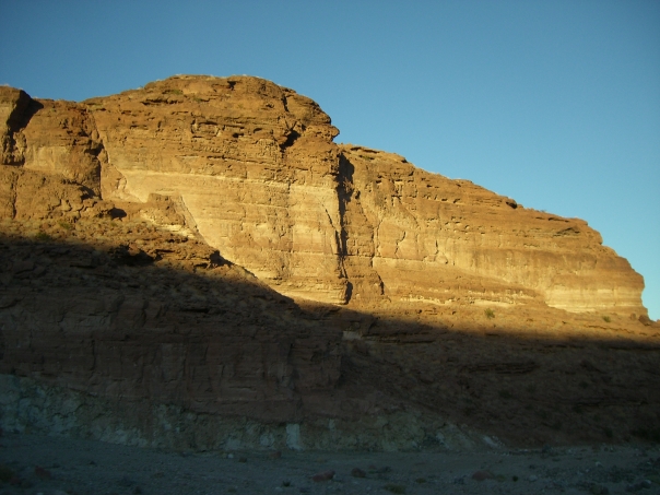 A sandstone cliff or outcropping somewhere in a desert around midday.