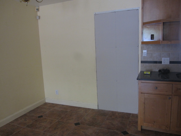 empty kitchen room with lineoleum flooring