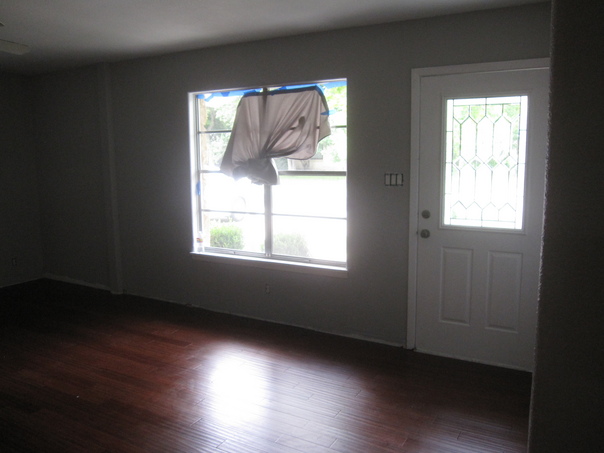 The painters are gone and the room is freshly painted and new hardwood flooring has been laid prior to listing.