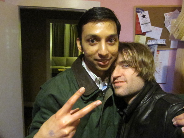 here there are two friends both are facing towards the camera and one of them shows the fingers like victory simbol