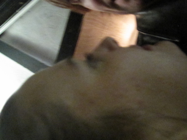 A enlarged view of a man's face look very absurd.