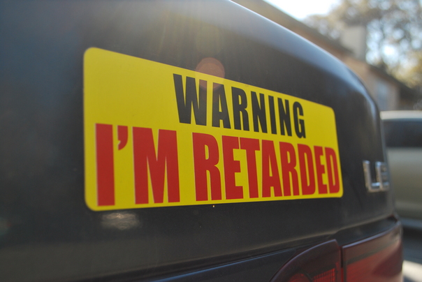 A word is to be displayed on a car. The word is I'M RETARDED.