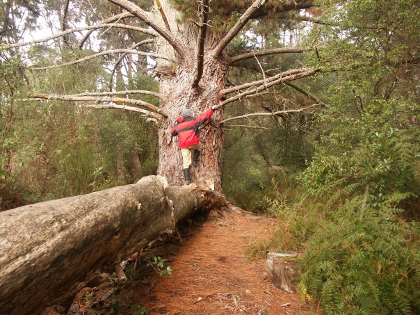 "John, I'm tired so I'm not going to climb this, but I just started dating this chick who said she really digs it when guys climb trees. So take a picture okay? Thank a lot man, she's pretty hot." "Okay, does this look good?"