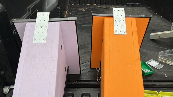 Oh what a joyous activity it was finally installing these birdhouses.