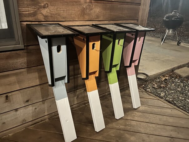 After spending about 6 weeks (on and off) building these things for Claire, I was finally able to get them installed in the very trees that I spent so much time clearing out back in January.