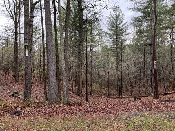Claire did a bunch of research on what bluebirds prefer for their habitat and so we found six trees that fit the criteria as best we could.