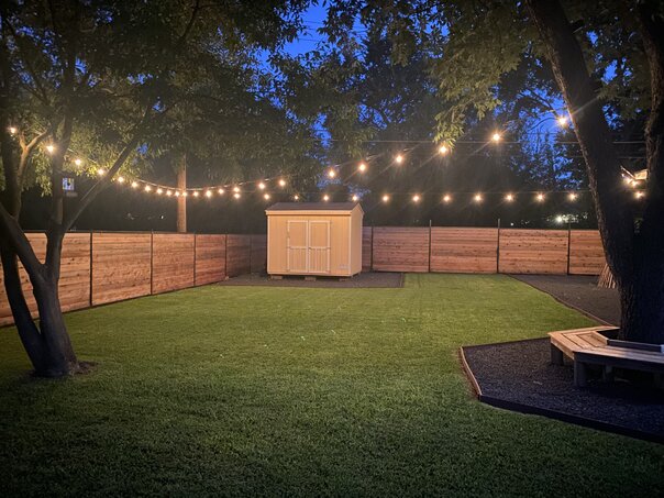 ![]() Installing Hanging Lights on Broadmoor Austin, TX I'd wanted to install nice hanging lights in my backyard for a long time. I'd tried a few times without hanging the steel cabling required to support them and proved to myself that it didn't work well. So I finally took the time to purchase all of the steel cabling that I needed, ran it all across the backyard, and strung up the lights. They came out pretty amazingly. |