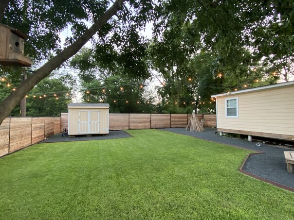 So I finally took the time to purchase all of the steel cabling that I needed, ran it all across the backyard, and strung up the lights.