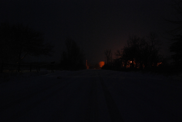 In this picture the trees are on the and in the dark.