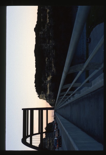 Vehicles passing through the bridge.