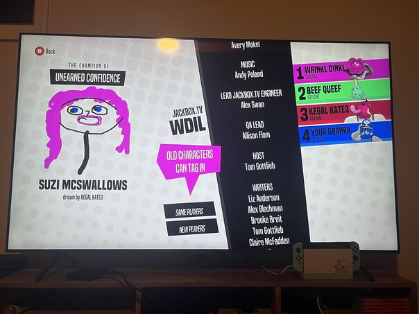 Claire's friends, Kitty and Wade, introduced Claire and I to a new Jackbox game they play called "Champ'd Up".
