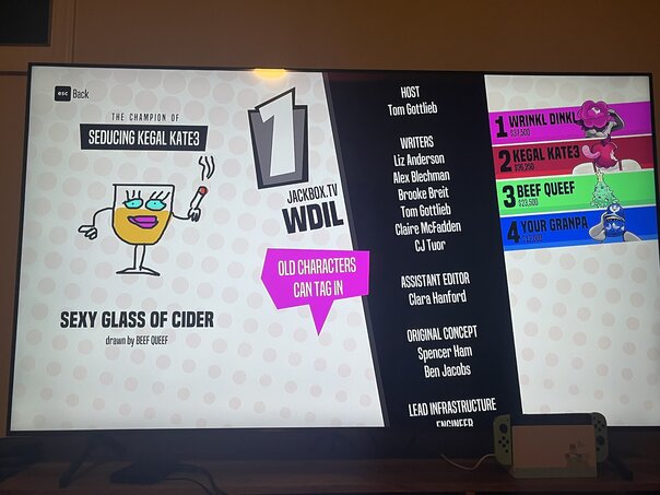 Claire's friends, Kitty and Wade, introduced Claire and I to a new Jackbox game they play called "Champ'd Up".