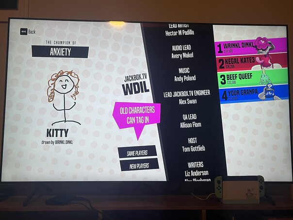 Claire's friends, Kitty and Wade, introduced Claire and I to a new Jackbox game they play called "Champ'd Up".