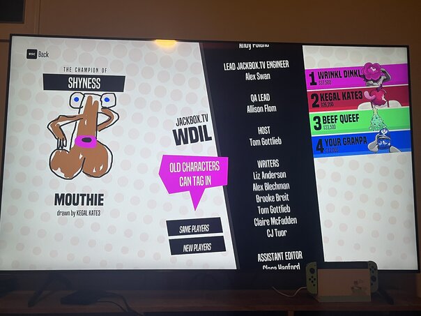 Claire's friends, Kitty and Wade, introduced Claire and I to a new Jackbox game they play called "Champ'd Up".