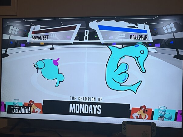 Claire's friends, Kitty and Wade, introduced Claire and I to a new Jackbox game they play called "Champ'd Up".