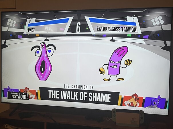 Claire's friends, Kitty and Wade, introduced Claire and I to a new Jackbox game they play called "Champ'd Up".
