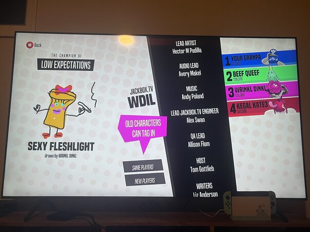 Claire's friends, Kitty and Wade, introduced Claire and I to a new Jackbox game they play called "Champ'd Up".