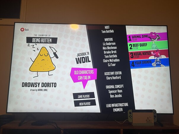 Claire's friends, Kitty and Wade, introduced Claire and I to a new Jackbox game they play called "Champ'd Up".